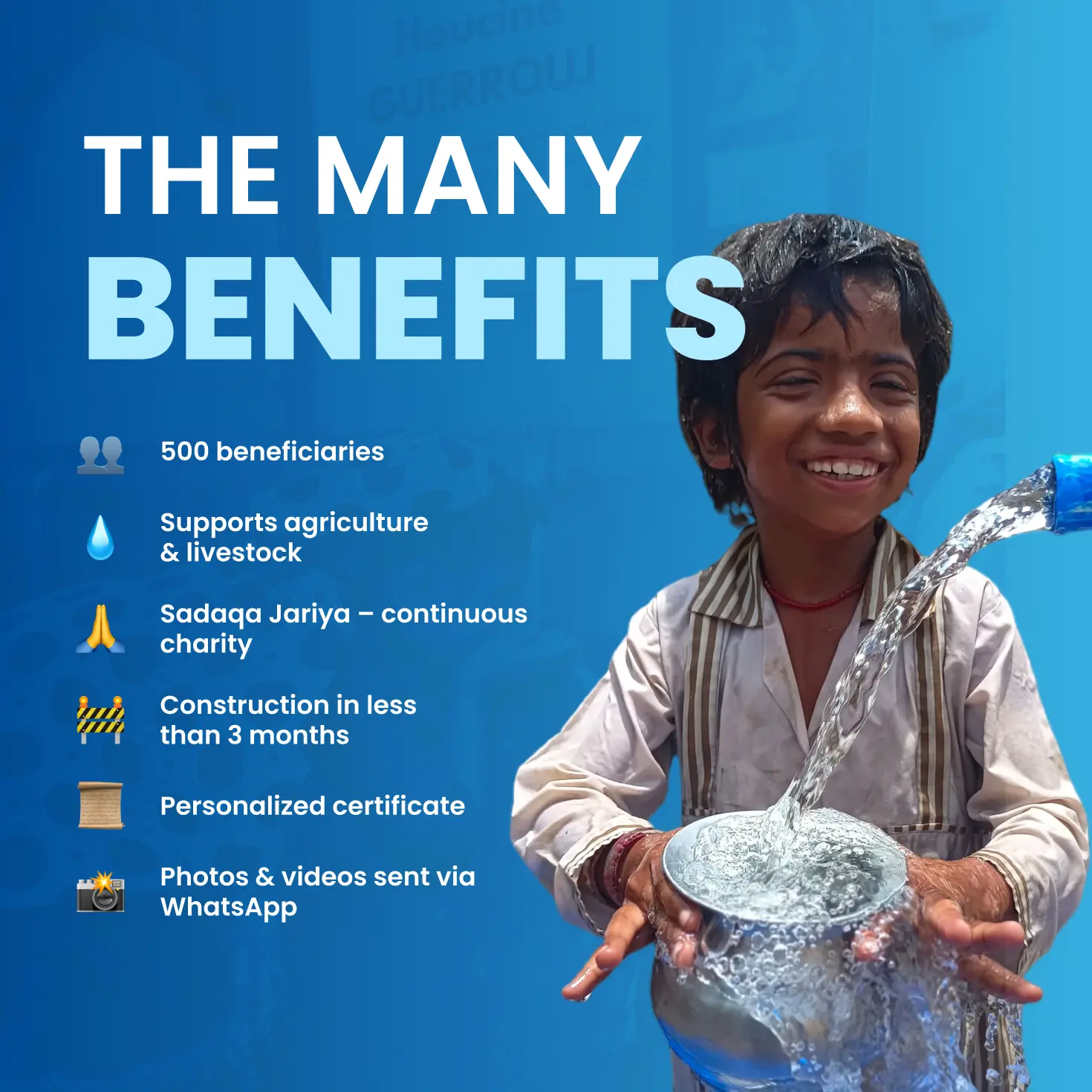 In Islamic tradition, constructing a well is considered one of the most meritorious forms of Sadaqa Jariya (continuous charity).