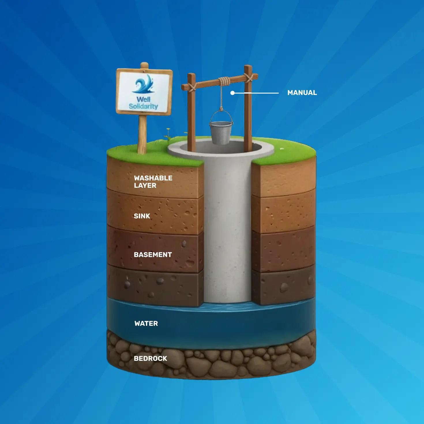 🪣 Manual bucket system: A simple and robust mechanism that allows water to be drawn directly, without relying on a pump or electricity.